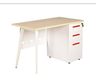 Bàn sử dụng hộc sắt kết hợp chân sơn trắng, tay nắm âm màu cam. Mặt bàn melamine. Yếm sắt có họa tiết trang trí, sơn trắng S26.