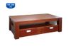 Bàn sofa mặt gỗ liền hình chữ nhật, chân ghép hộp vuông. Phần dưới gầm bàn có 2 ngăn kéo.